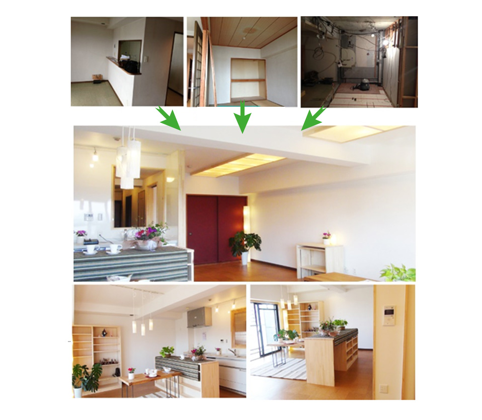 設計事務所のリフォームは大掛かりなリフォームだけと思われがち ですが、キッチンなど設備の入替えや、内装を替えるだけの小さなフォームからマンションのリノベーション、店舗の改装、古民家改修なども行なっています。
